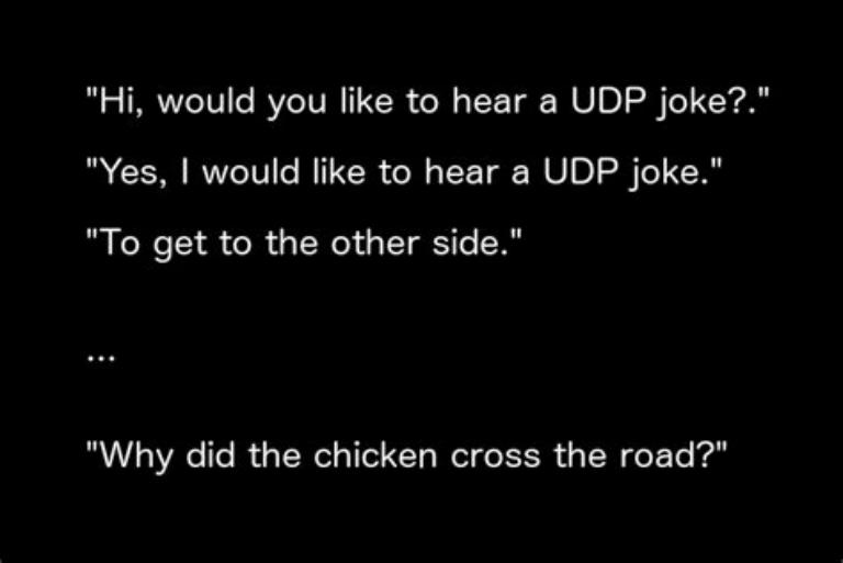 To complicate things a bit more, there is also a method to send data unreliably: the sending computer sends all the pieces hoping that most of them arrive safely. The advantage is it’s a lot faster and works well for video and audio when losing a few milliseconds here and there usually goes unnoticed. This covers the User Datagram Protocol (UDP) part of the layer.